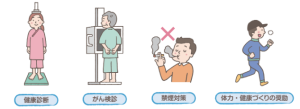 健診メニューは「健康づくり」をご確認ください(がん検診のメニューもあります)。